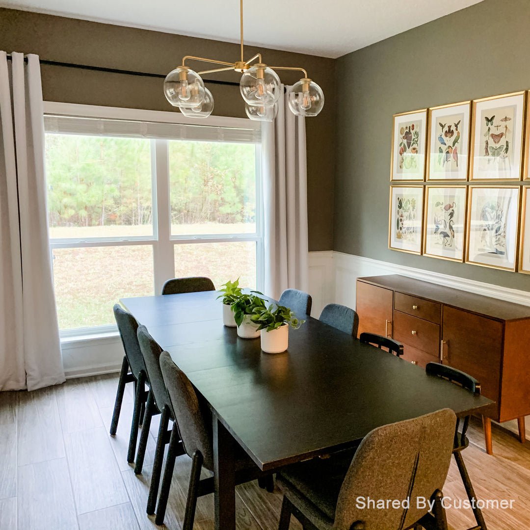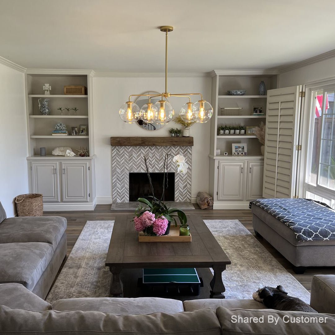 Hand-blown Glass Globes: Each globe is individually hand-blown by skilled artisans, resulting in unique variations in shape, texture, and color. The organic nature of hand-blown glass adds character and charm to the chandelier, making it a one-of-a-kind piece that adds warmth and personality to your home.